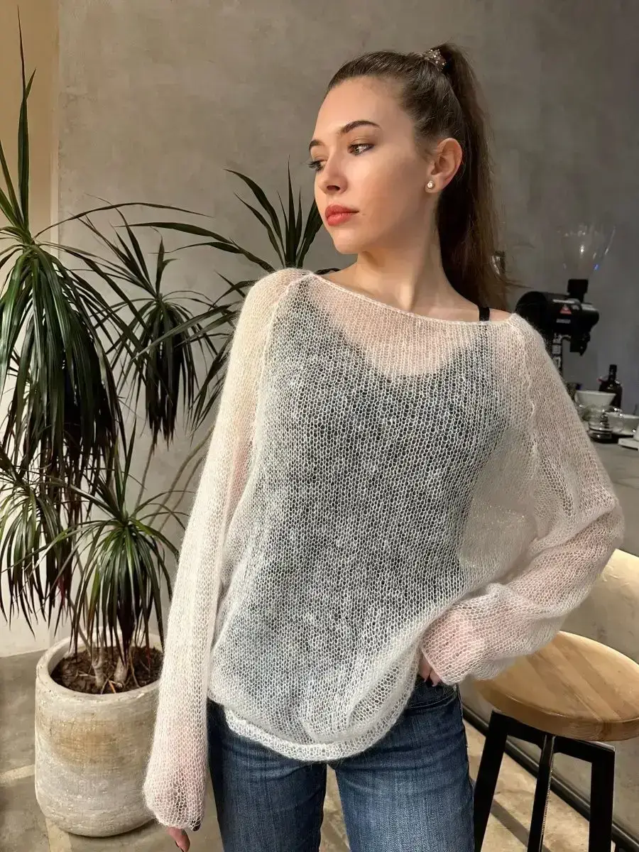 Мохеровый свитер паутинка - модный тренд сезона, идеальный выбор для стильного образа в холодное время года, вязаный из премиального мохера и украшенный изящным паутинным узором